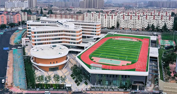 青島君峰路中學(xué)地下室為一個(gè)整體,地上結(jié)構(gòu)通過(guò)抗震縫分為教學(xué)樓、風(fēng)雨操場(chǎng)及報(bào)告廳共三個(gè)結(jié)構(gòu)單元,總建筑面積約69198㎡,總用鋼量為9347噸。項(xiàng)目以“十年樹(shù)木、百年樹(shù)人”為設(shè)計(jì)主題, 創(chuàng)造人性化、公園式的校園環(huán)境,構(gòu)建“主動(dòng)學(xué)習(xí)”的積極趣味空間。