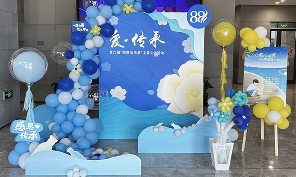 七年來(lái),“感恩與傳承”主題文化活動(dòng)成為了龍?jiān)髽I(yè)文化的重要載體。在第四屆“感恩與傳承”主題文化活動(dòng)上,集團(tuán)將“愛(ài)·傳承”定為主題,倡導(dǎo)龍?jiān)顺迅卸髦模瑢⒂霉嫘袆?dòng)回饋社會(huì)大眾,傳承大愛(ài)。自此開(kāi)始,“愛(ài)·傳承”的主題也一直延用了下來(lái),今年主背景板設(shè)計(jì)了“海上花開(kāi)”的形象,也寓意著龍?jiān)耙宦废蛏疲幌ⅰ薄?/span>