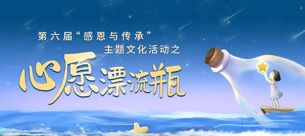 “心愿漂流瓶”是龍?jiān)裨壬苹鸢l(fā)起的公益項(xiàng)目,也是本屆“感恩與傳承”主題文化活動(dòng)的重要組成部分。714日,龍?jiān)裨壬苹鹫桨l(fā)布“心愿漂流瓶”的征集活動(dòng)。