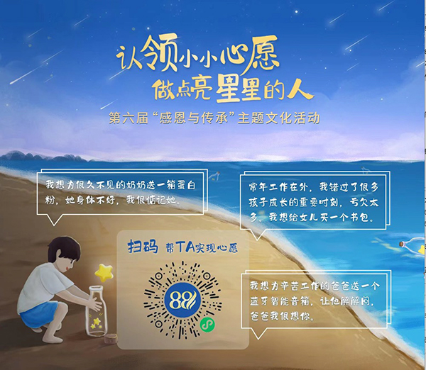 88日當(dāng)天,“心愿漂流瓶”通過小程序正式公布,很快獲得了大家的積極響應(yīng):集團(tuán)多位高管帶頭支持,機(jī)關(guān)員工、項(xiàng)目經(jīng)理以及下屬單位也紛紛行動(dòng),通過個(gè)人或集體的名義獻(xiàn)上愛心。