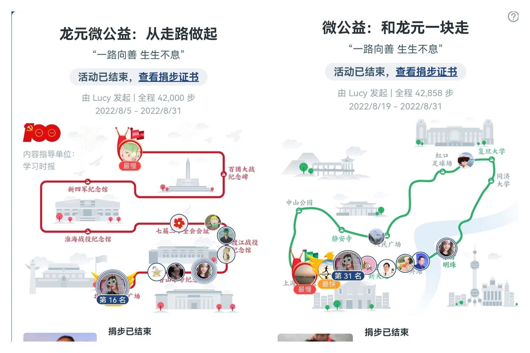 活動(dòng)發(fā)起后,龍?jiān)嗄隉崆楦邼q,除總部外,遠(yuǎn)在全國各地的龍?jiān)策h(yuǎn)程助力,不到一周就完成了30公里的行走任務(wù)。