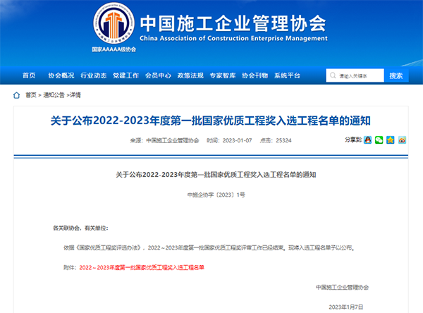 “國家優質工程獎”設立于1981年,由中國施工企業管理協會組織實施,是經國務院確認的中國工程建設領域設立最早、規格最高、跨行業跨專業的國家級質量獎,其宗旨是弘揚“追求卓越,鑄就經典”的國優精神,宣傳和表彰設計優、質量精、管理佳、效益好、技術先進、節能環保的工程項目,是我國工程建設質量方面的最高榮譽。