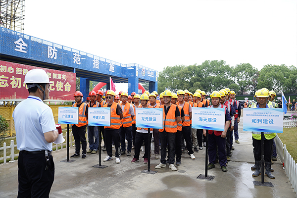 這是衢州市2023年安全生產(chǎn)月防汛排澇和消防救援應(yīng)急演練現(xiàn)場(chǎng)。本次活動(dòng)由衢州市智慧新城管理委員會(huì)、衢州市住房城鄉(xiāng)建設(shè)局主辦,龍?jiān)瘓F(tuán)承辦。衢州市住房和城鄉(xiāng)建設(shè)局黨委委員、副局長(zhǎng)吳群,衢州市慧城產(chǎn)業(yè)發(fā)展集團(tuán)有限公司黨委書記、董事長(zhǎng)、總經(jīng)理陳衍華,衢州智慧新城管理委員會(huì)安全應(yīng)急部部長(zhǎng)黃斌出席活動(dòng)并發(fā)言。項(xiàng)目各建設(shè)單位、施工單位、監(jiān)理單位共200多位代表參加活動(dòng)。龍?jiān)瘓F(tuán)浙江公司副總經(jīng)理夏柏生代表集團(tuán)作表態(tài)發(fā)言。