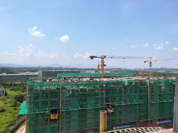 712日上午,在廣信區(qū)城南新區(qū)的和興家園安置小區(qū)項(xiàng)目施工現(xiàn)場(chǎng),各類大型機(jī)械開(kāi)足馬力,一輛輛大卡車運(yùn)著材料駛進(jìn)施工場(chǎng)地,工人們馬不停蹄地?fù)屪r(shí)間節(jié)點(diǎn),高峰期,每天施工人員超500余人。