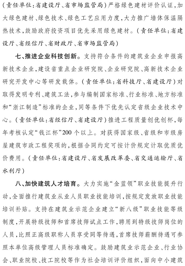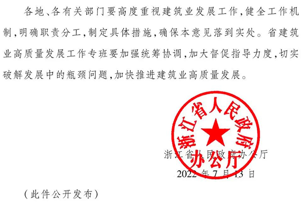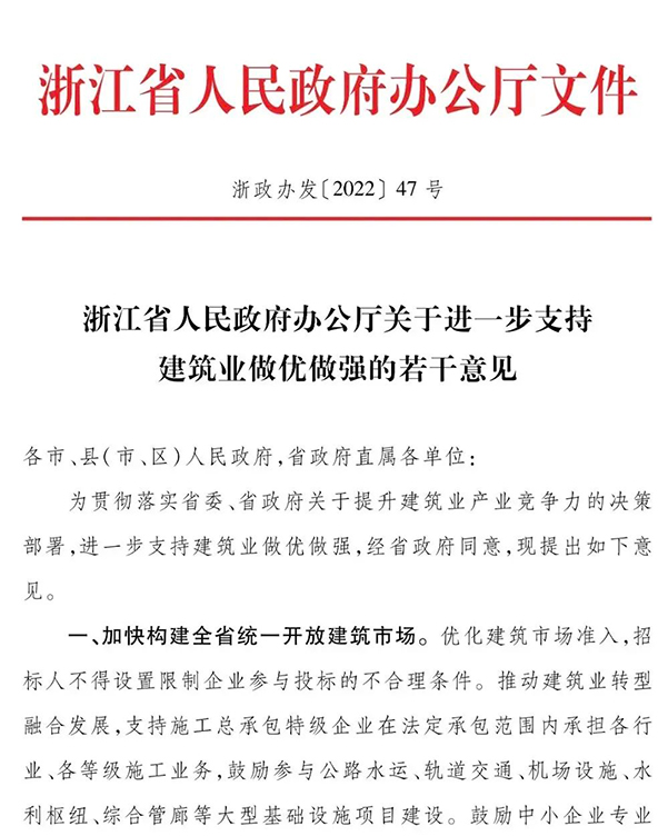浙江省人民政府辦公廳發布《關于進一步支持建筑業做優做強的若干意見》